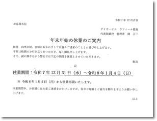 | 私たちの思い | 一日の流れ | お申込み・お問合せ | 施設案内 | スタッフブログ |